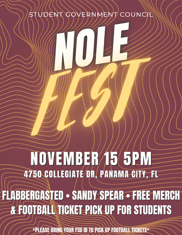 Students and alumni are invited to kick off Homecoming Week with Nole Fest 2024 at Florida State University Panama City on Friday, Nov. 15.