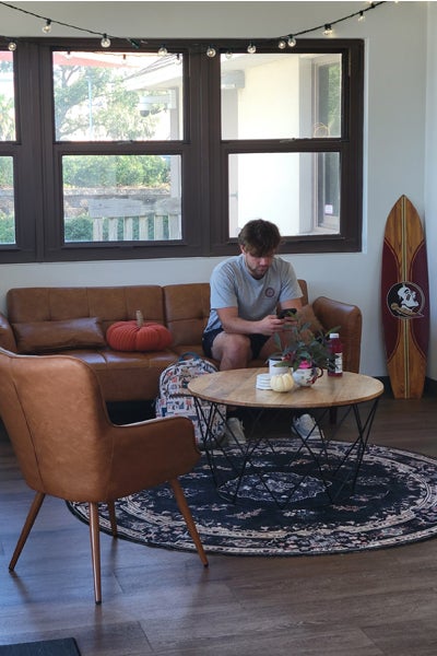 "It's kind of a weird location, but a great one where you can add a setup like this with a hangout space," she said. "You also are able to come and eat in between classes. This is kind of like a little getaway. That was the setup that we were going for.”
