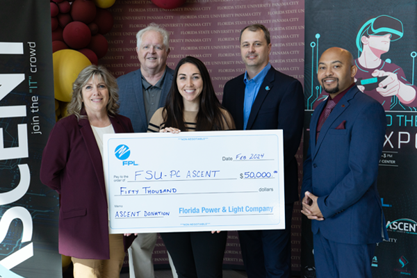 A $50,000 donation from Florida Power & Light Co. (FPL) will generate matching funds for the ASCENT initiative at Florida State University Panama City, totaling $100,000 toward its mission to develop a high-tech workforce in the Panhandle.
