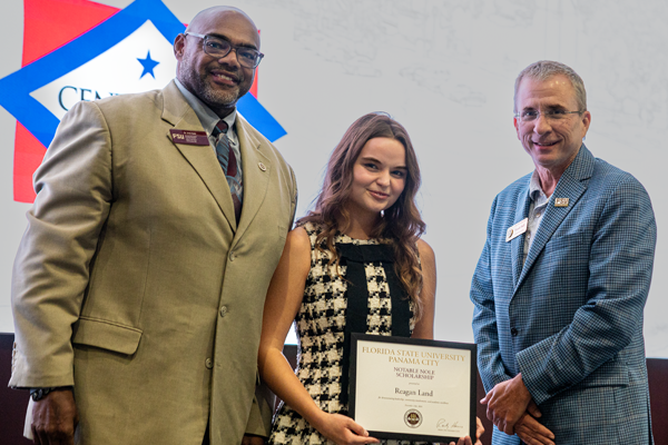 “Their research sought to understand how engagement could become the long-term culture of FSU Panama City, and how engagement fosters a sense of belonging in our students,” said Associate Dean Irvin Clark, who presented the award during a luncheon on Nov. 19. “There’s a lot more to the learning paradigm than the four walls of a classroom. (Reagan) has taken the student engagement model to a whole other level.”
