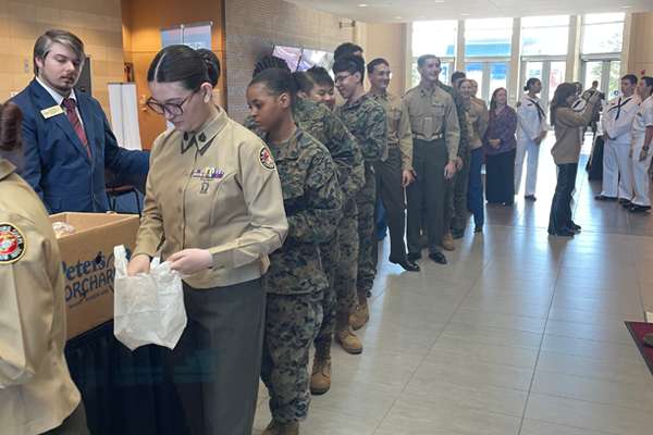 The attending students wore the military uniforms of their divisions, such as U.S. Army, Navy, Air Force, Marines, and Coast Guard. The Rutherford High School JROTC presented the colors, and Cadet Capt. Aneka Walker sang the national anthem. U.S. Army veteran and current FSU PC Psychology major Jordon Ayala led the Pledge of Allegiance.