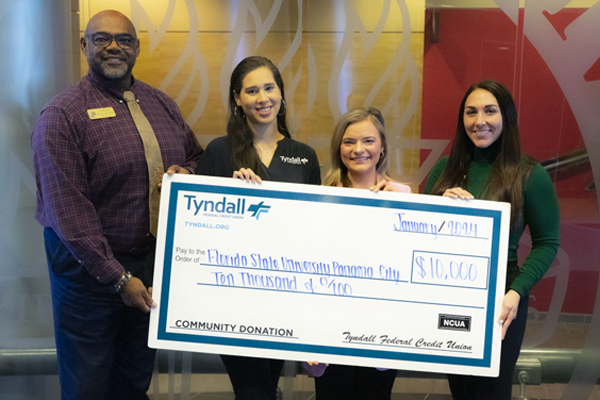 Tyndall Federal Credit Union presented a check for $10,000 to Florida State University Panama City on Tuesday.
