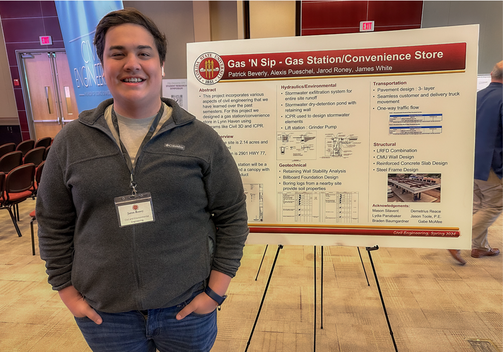 Our project involves designing a gas station/convenience store located in Lynn Haven, FL. To achieve this, we are utilizing programs like Civil 3D and ICPR. With Civil 3D, we have created our site plan and designed our sewer, water, and storm pipe systems. Our sewer system incorporates a lift station to match the pressure of the force main on HWY 77.