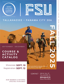 OLLI at FSU, PC30A offers educational non-credit courses as well as entertainment through classes, field trips, socials, special events and travel. Courses cover a wide range of topics including art, sports, history, literature, science, music, etc. It is stress-free learning with no homework, no grades and no degrees required.